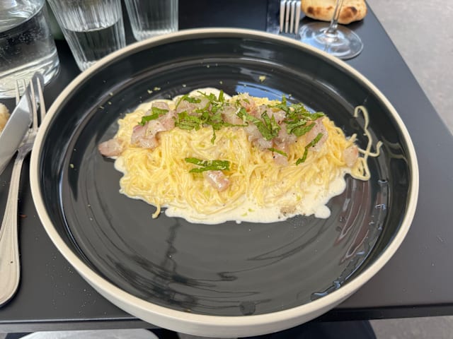 10/10Lovely ambiance, very nice music in the background - a good mix of French and English classics and not too loud. Beautiful terrace with fairy lights and sun umbrellas - wasn’t too hot the evening we went but would be perfect for an afternoon lunch during the summer. Food was absolutely to die for! Freshly cooked pasta basil pasta (Al dente tagliatelle !! ????) and I would recommend the artichoke starter which was delicious! We were too stuffed for dessert! I will be back!