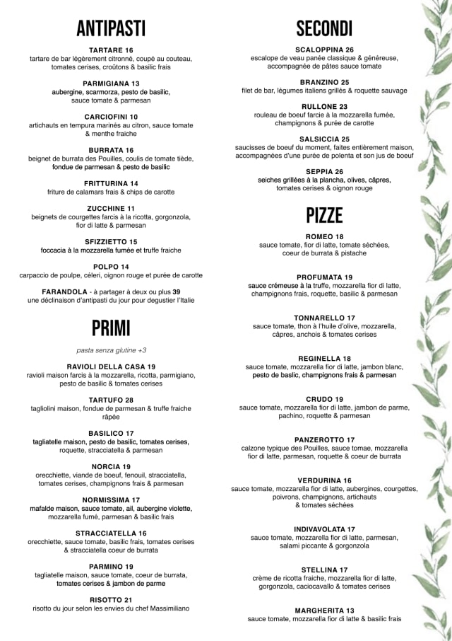 7/10Good food quality with a strong effort to keep an italian menu. Good variety in the specials. Dessert menu is too “french adapted” and would be better to maintain italian roots food. The Service is fast and welcoming