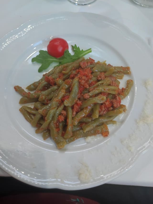 Spaghetti di Gragnano Aglio, Olio, Peperoncino, Vino Rosso e Crumble di pane