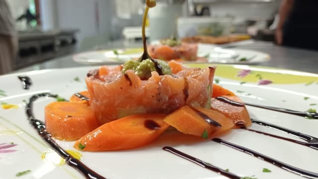 Pomodoro, mozzarella, prosciutto pata negra, burrata di bufala