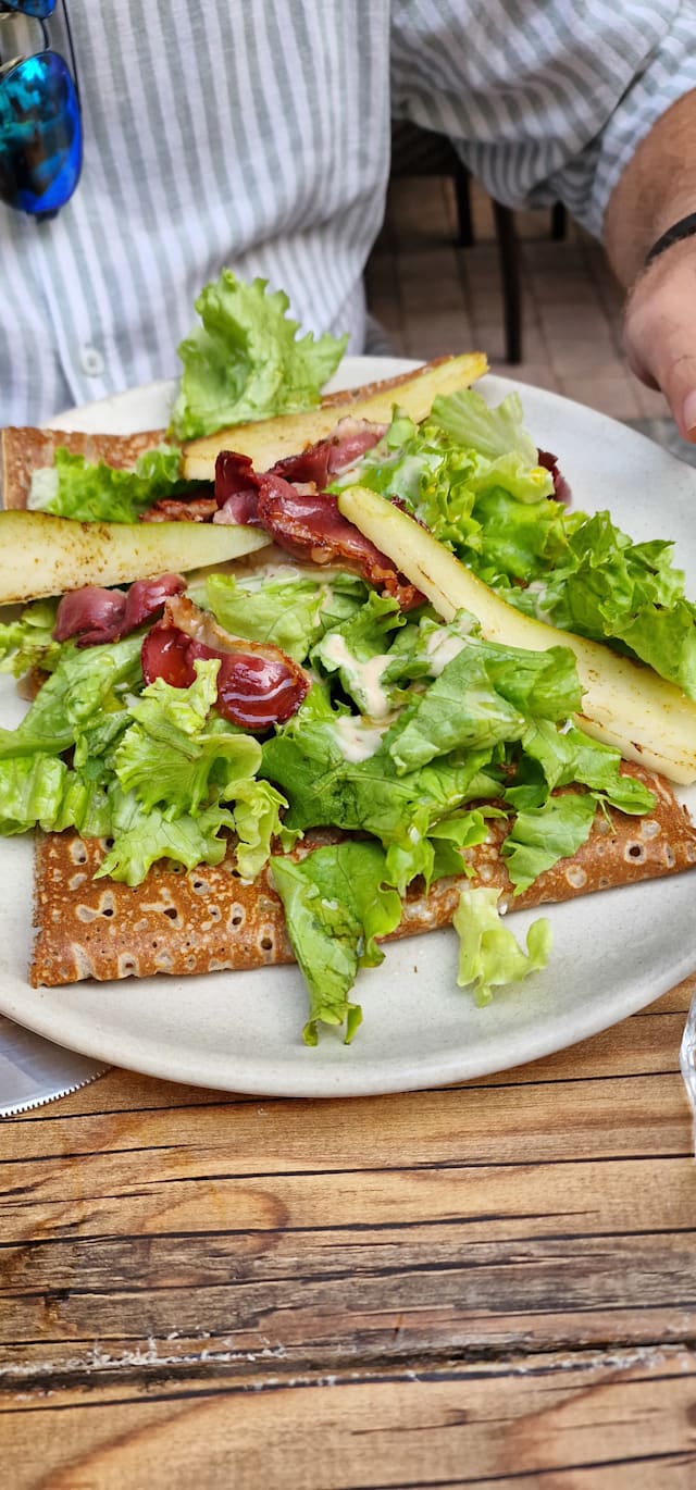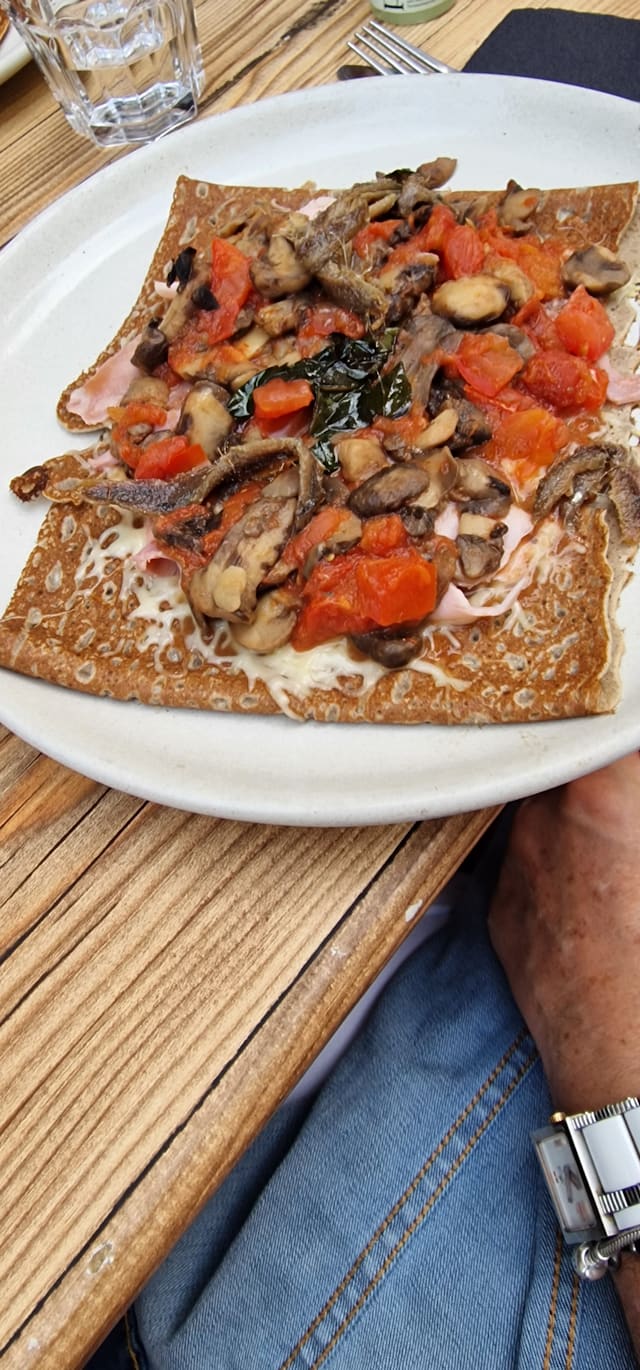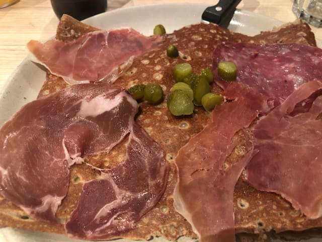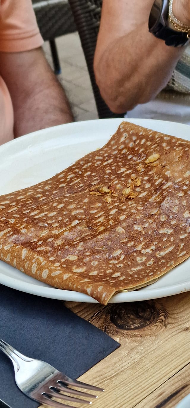 6.5/10Noisy terrace with Pizza delivery scooters nearby. Crepes lacked taste and tasted all the same. Service was ok.