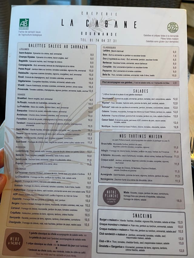 10/10Nice Crêperie, good ambiance, big choice of crepes and very pleasant waitress