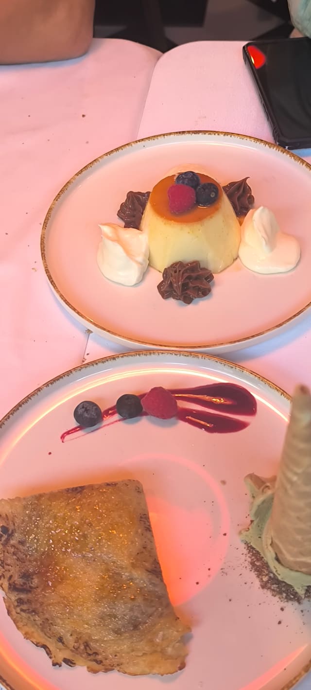 7.5/10The ambience was nice, very good illumination and music not do loud. However, the tables are too little for two people, since the service includes some appetizers and the main dishes have their little grill is hard to eat with all that over the little table. Food and wine were good. Service could be more organized and and have a better attitude.