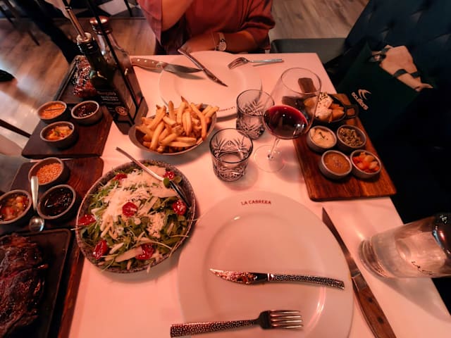 10/10La Cabrera was outstanding. The empanadas as a starter were very good. I really like the flavor accents they serve with them and the steaks, including special salt varieties. And we got a sampler of side dishes sides for the steaks which we enjoyed. And the steaks were so tender and flavorful: a delight. Service was excellent. We liked everything about our visit and dinner.