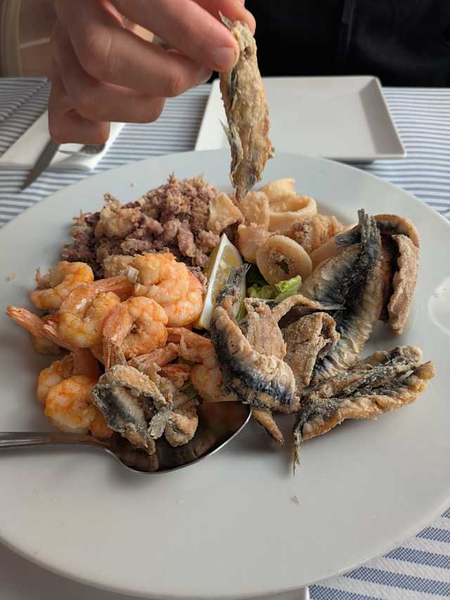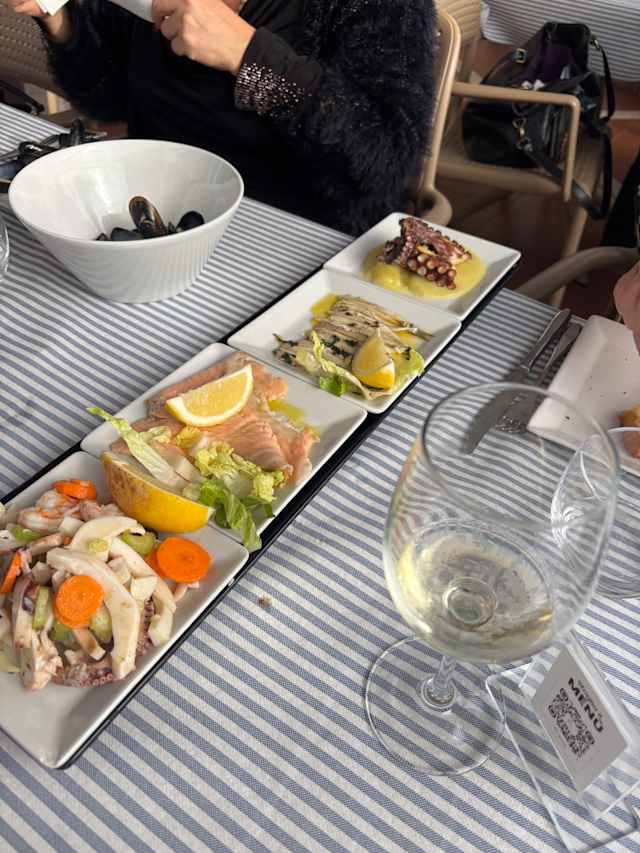 - Insalta di mare,polpo rosticciato,salmone e alici marinate