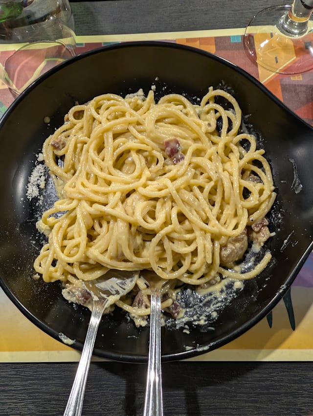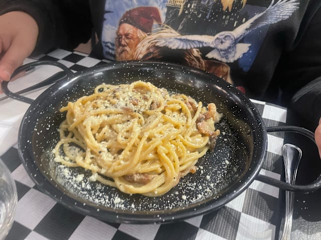 8/10Stayed on Via Appia Nuova for 6 nights and ate here three times. Indoors, outdoors and take out wood fired oven pizza. Family neighbourhood restaurant with steady custom, and good choices across all courses. Grilled seafood and carbonara were especially good. Short but varied wine selection which matched the foods well. Well worth the visits.