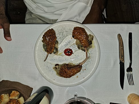 10/10Everything about the experience was outstanding, from the lovely staff to the relaxed but super efficient service. The room itself is very elegant and but the welcome is relaxed and friendly. The dishes we had, from poached egg with taleggio and mondeghili dal mare, to the outstanding risotto, followed by the costoletta and pollo secondi, the tiramisu! But the wines, oh the wines, expertly paired with each dish were an education and a sensation. Bravo Alex and the team!