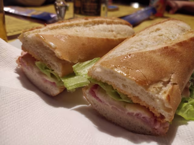 - (Cotoletta, bacon, cipolle caramellate, fontina, pomodoro, insalata). I panini vengono serviti con contorno di patatine