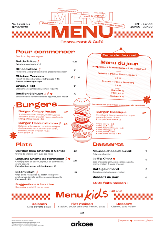 Une table où on se fait plaisir, that’s the plan ! Des plats simples, des recettes pimpées, des burgers à se damner et des desserts auxquels on ne peut pas dire non même si on est full, voilà ce qui vous attend chez Arkose Cantine.