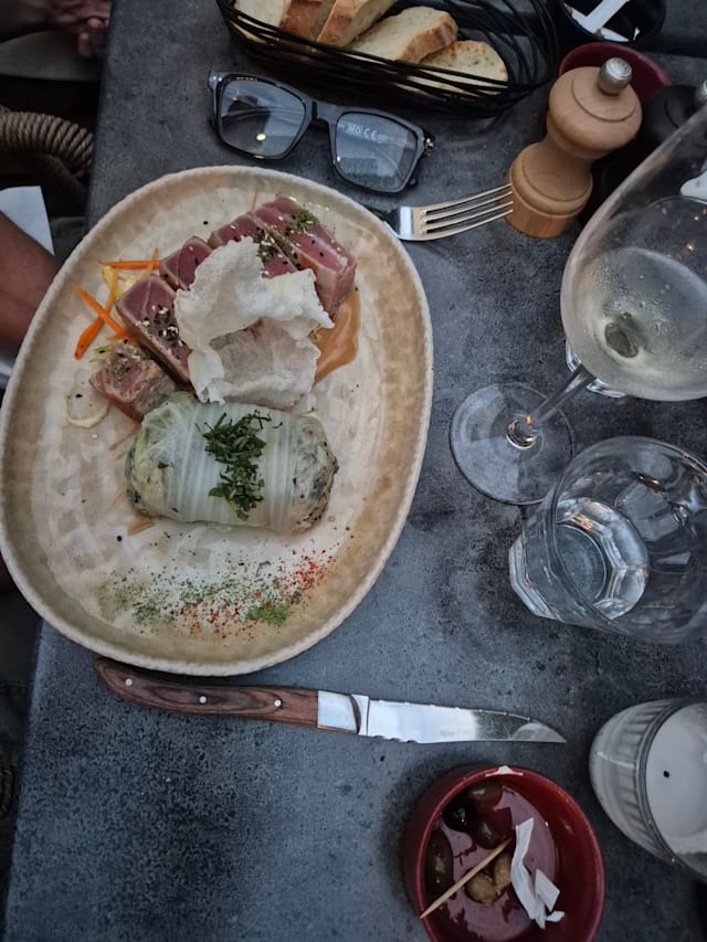 6.5/10very nice location. too bad that when really hot in the summer you get the mell from sewage outside on terrace, it was not so strong but still leaves a bad memory. food and menu te very good. plates are served in a very nice deco fashion . wine a bit pricey (46 eur a bottle was on low end) but good . too bad only when it was ti.e to pay were we told that credit card was not working (we stayed over 3 hours) and were obliged to pay cash. we gave more (10 eur) but never got our change ...I mean we were ready to tip but I find it quite unprofessional to not give the change or even acknowledge the fact. it's even rude