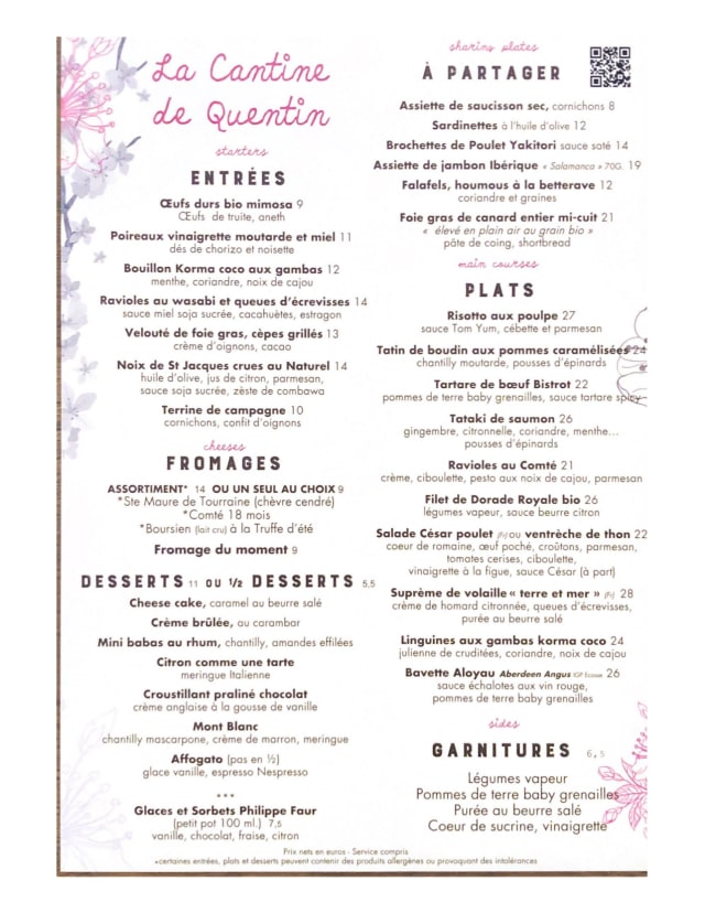 La Cantine de Quentin is identified as offering european cuisine.
