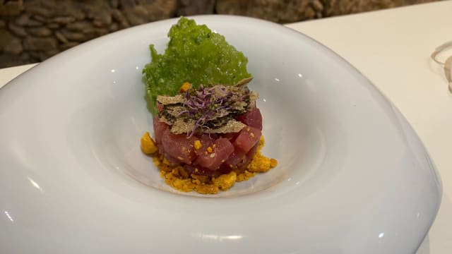 - Raschiatelli con pesto di pistacchio e crudi tonno al limone