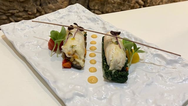 - Spiedo di branzino ai pomodori secchi e guanciale