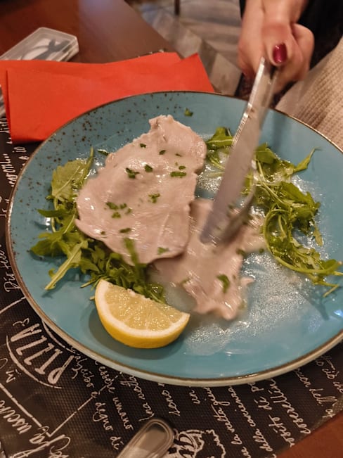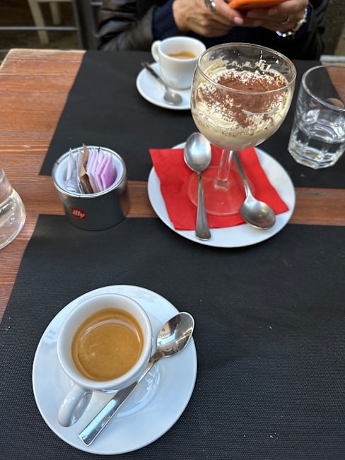 3/10In a nutshell, we believe this was the worst restaurant experience we had since more than 10 years in Italy. In detail: 3 pieces of Raviolini with porcini mushrooms (I bet, "fresh" from the very big tin ...) and truffels (the only ingredient that convinced), poorly prepared (pasta too hard - and we are not afraid of "al dente") and only lukewarm when they arrived on the table. Had it not been for the truffles, 20 euro would have been excessively expensive. Saltimboca and Scaloppina thinly scliced that it could have satisfied the requirement of a carpaccio. The sauce - once again, from the "big tin" ... wine was poor (euro 6 per glass, not even economical). Spinach and cicoria were ok. The ambiente shabby, the table sticky ,,,, Absolutely NOT recommendable. Never again.