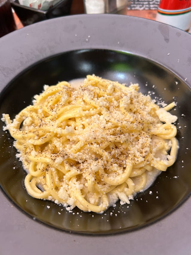 6/10Average food, not keeping up with the amazing food in Italy. Pasta was not fresh, was store bought spaghetti. Taste is ok.