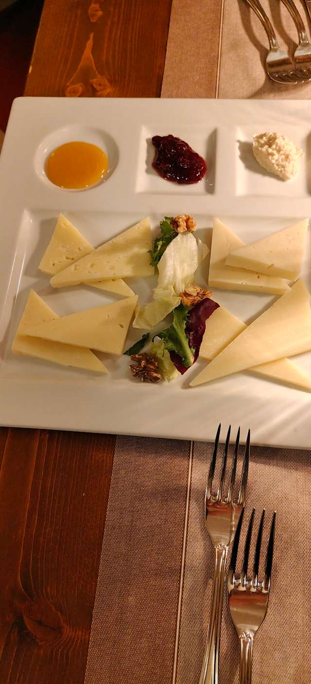 - Tagliere di formaggi con miele, noci e marmellata di mirtilli