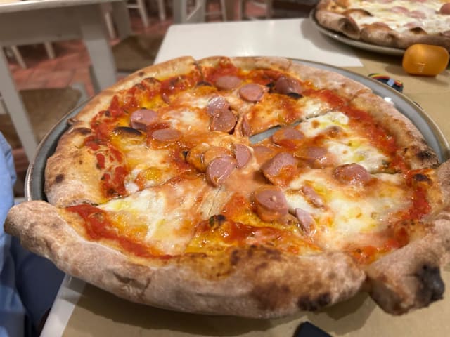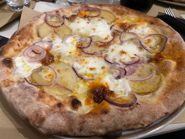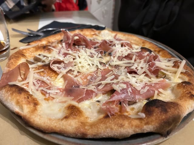 9/10Very good pizza, very rich pizza menu. Three star just for the table disposition and the acoustic, when it’s full it could be loud.
