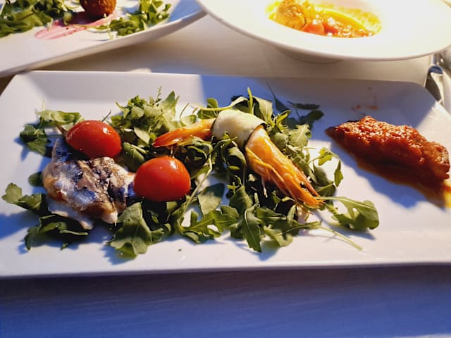 5.5/10The food was ok. The size of the dishes were small. They made us pay 56€ for an antipasto made of 8 shrimps. What else is there to say? Thieves. Never going there again