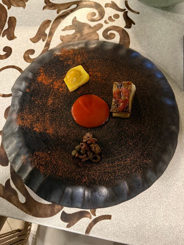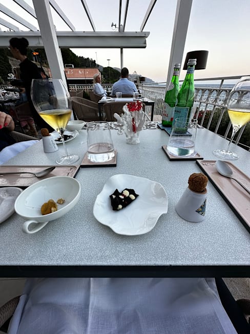 6.5/10+1I had high expectations because it was a Michelin one-star restaurant. The food certainly looked good and the taste wasn't bad, but it was too elaborate and I wasn't impressed with the taste. I got the impression that the restaurant as a whole was making a lot of effort with the service. However, neither we nor the other customers were smiling all the time. Also, the prices were very high compared to other restaurants in Taormina. I also didn't like the system of having to order food several months in advance. Would I go again? No. I think this is what happens when a restaurant receives a Michelin rating, but we were disappointed.