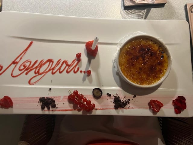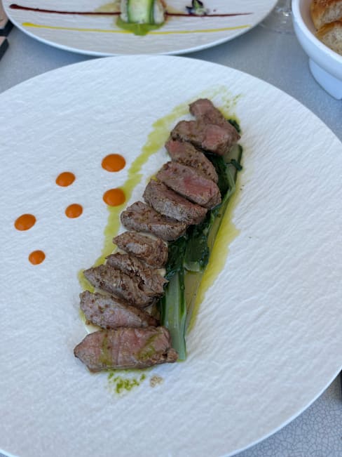 8.5/10+2Location is pretty unique and romantic, if you have good company you don't mind the train keep passing, it was a nice breeze during the dinner and we set outside. we had to ask for bread sticks while other tables gets automatically, We prebook land and fire menu bit there was a little bit confusion, they started us with see food plates than we move to meat options, but we were not able to try the carpaccio which was unfortunate, food quality was top notch and taste really good, Emmanuel ( Manager ) was very kind and attentive. They work as a team and everyone one very attentive, wine pairing was great and server from Gunie was super nice, also lady who was helping us with wine was on top of his game and pairing timed perfecly, over all good experience but wasn't great. Thank you so much.