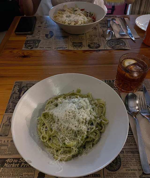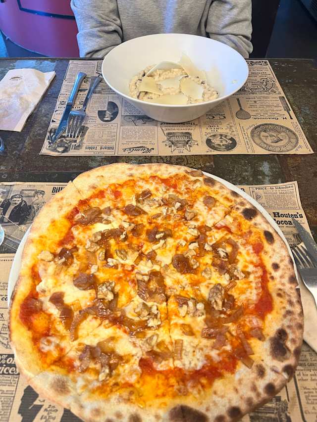 8/10Everything was good. The food was tasty, but it wasn’t exceptional. I expected a stronger flavor from the pizza (ordered with goat cheese and chorizo - the goat cheese flavor was quite mild) and the truffle pasta had a bit too much sauce.