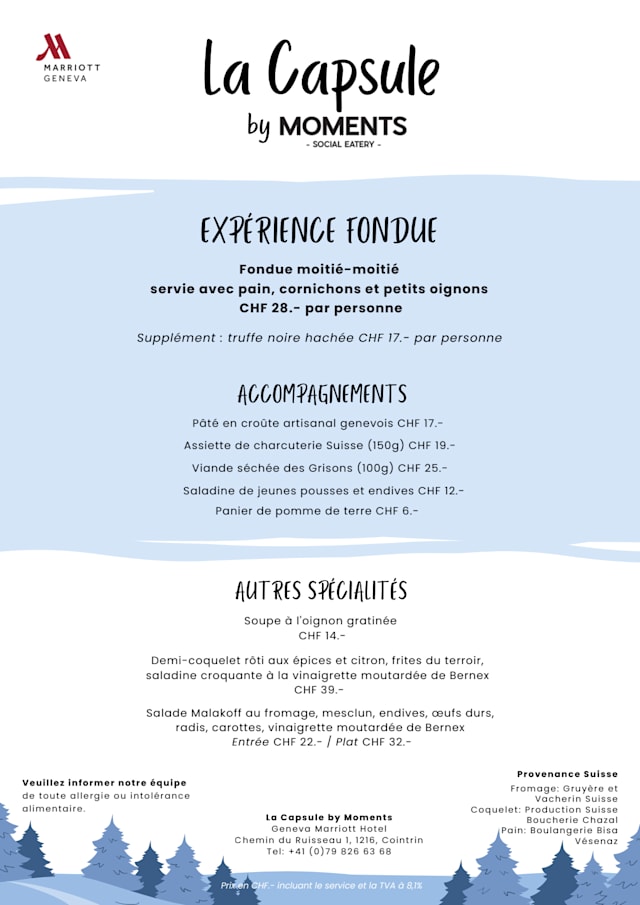 According to TheFork users, La Capsule by Moments is one of the trendiest restaurants in Cointrin at the moment.