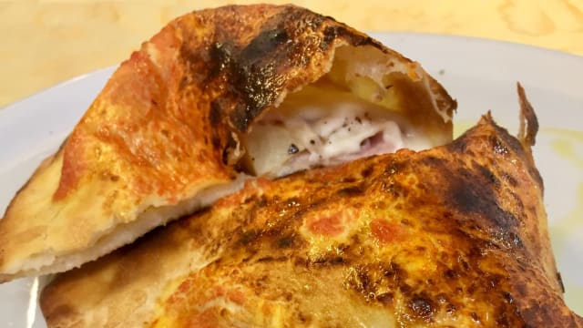 Polpo arrostito al forno fino a ottenere una superficie croccante e dorata, adagiato su una crema di patate. Il piatto è esaltato da foglie di prezzemolo fritte e sottili vele di pane tostato, il tutto completato da un filo di olio extravergine d’oliva a crudo.