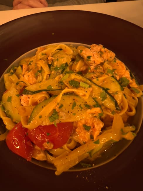 10/10We had bruschetta, house red wine, spaghetti with clam sauce., tiramisu. All very good. Also had tagliatelle with mushrooms which I didn’t like as much. We had a very nice relaxing dinner and I would eat here again.