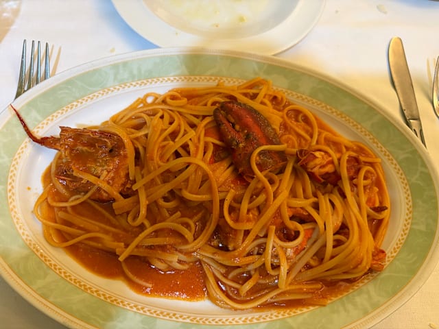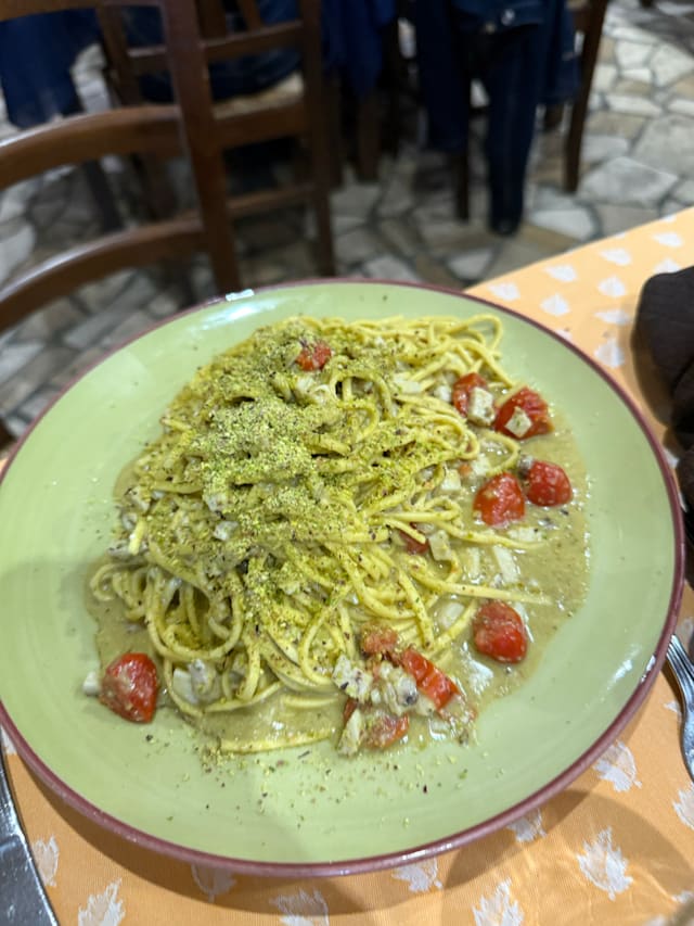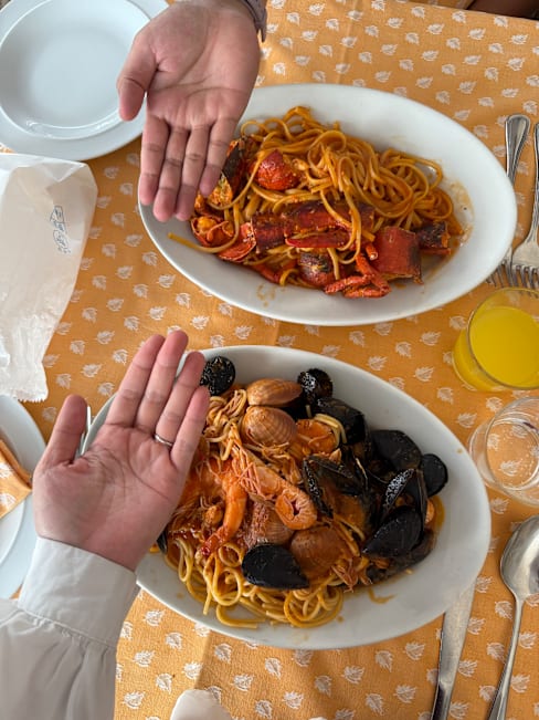 10/10The taste of the fresh seafood pasta. I ordered the Spaghetti Allo Scolio, seafood pasta. While my husband ordered the Linguine All Astice, the lobster pasta. Both taste amazing. The staff that show our seat and took our order even show us the fresh lobster that would be used for the pasta. The place was not touristy at all. Most of them are local, the environment are really laid back and relax, no one would look you weirdly if you use hand to open the lobster and shrimp. Both of us felt so comfortable. Would come back if we are visit Roma.