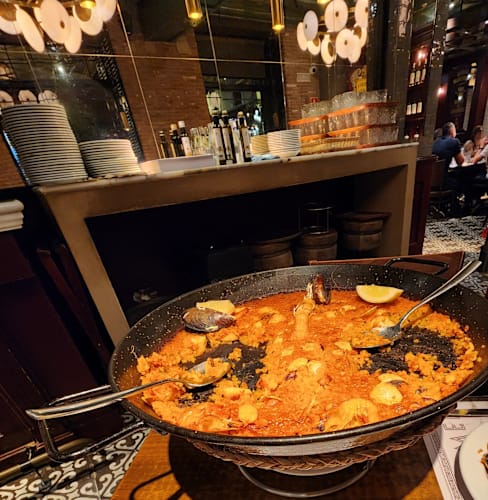6.5/10Either the waiters are not familiar with what the fideua comes loaded with, or the menu is wrong. They attempted to disagree after we complained that there were no prawns in, until we pointed those out on the menu. The aubergine was okay as were the Paxton peppers. Fideua tasty. Wouldn’t go back though.