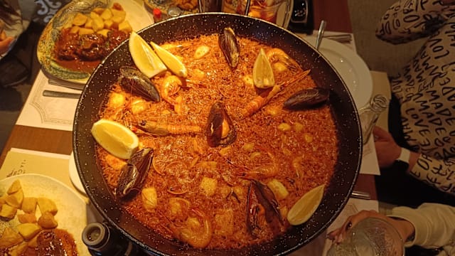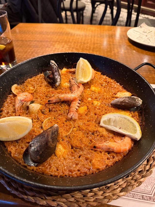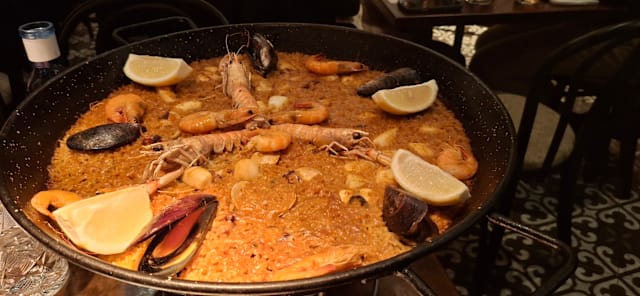 6/10The Pork Belly was perfectly cooked but that was the best part of the evening. The paella was overcooked, which made it hard and dry on top, although it had plenty of seafood in it. When we arrived at the door, nobody greeted us. We found a waiter and he went to get the head waiter (I assume, because he was dressed differently), but that guy just pointed to a table behind him so we just went and sat there. There was a serviette missing and both forks were missing. Nobody came for a while so we had to get up and get some forks from the counter and a serviette from another table. Eventually, we were served by the same head waiter who doesn’t know how to smile or engage his customers. We felt like we were at a funeral. In the end, the overall experience wasn’t super bad, but it wasn’t super good either. Just AVERAGE.
