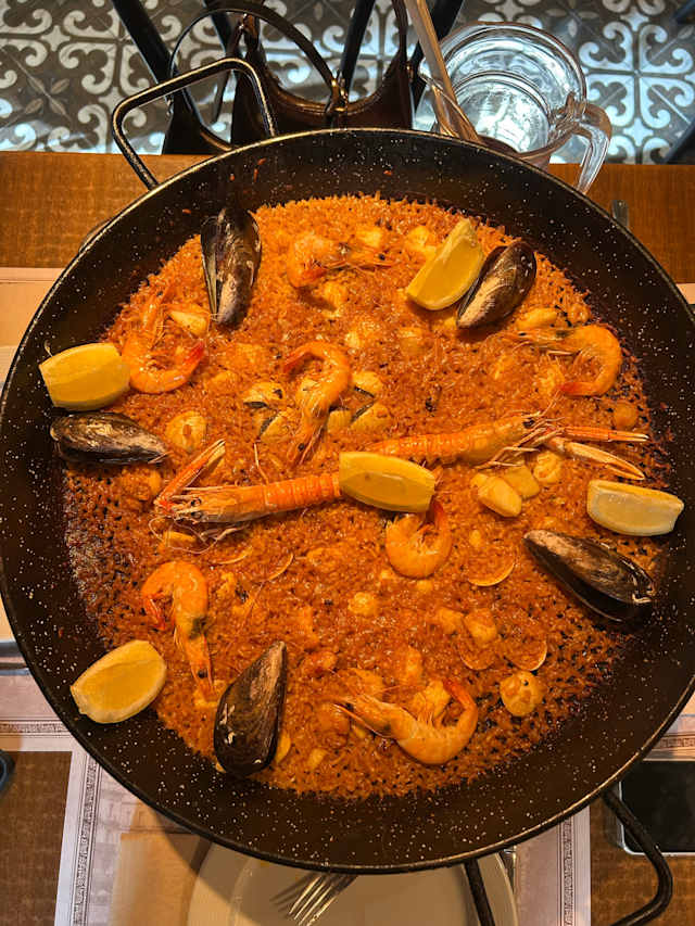 - Cuttlefish & prawn paella, made with noodles and the ink of the cuttlefish.