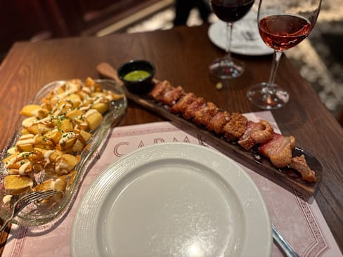 6/10The Pork Belly was perfectly cooked but that was the best part of the evening. The paella was overcooked, which made it hard and dry on top, although it had plenty of seafood in it. When we arrived at the door, nobody greeted us. We found a waiter and he went to get the head waiter (I assume, because he was dressed differently), but that guy just pointed to a table behind him so we just went and sat there. There was a serviette missing and both forks were missing. Nobody came for a while so we had to get up and get some forks from the counter and a serviette from another table. Eventually, we were served by the same head waiter who doesn’t know how to smile or engage his customers. We felt like we were at a funeral. In the end, the overall experience wasn’t super bad, but it wasn’t super good either. Just AVERAGE.