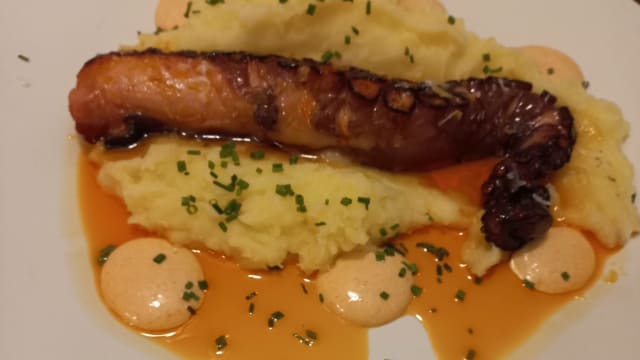 Pata De Pulpo a La Plancha Con Parmientier De Patata, Aceite Y Pimentón