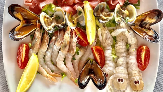 Insalata di mare-marinato di salmone e alici-cocktails di gamberi