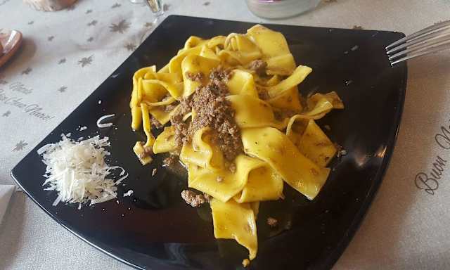 - Pappardelle al cinghiale in bianco con aceto balsamico e scaglie di pecorino