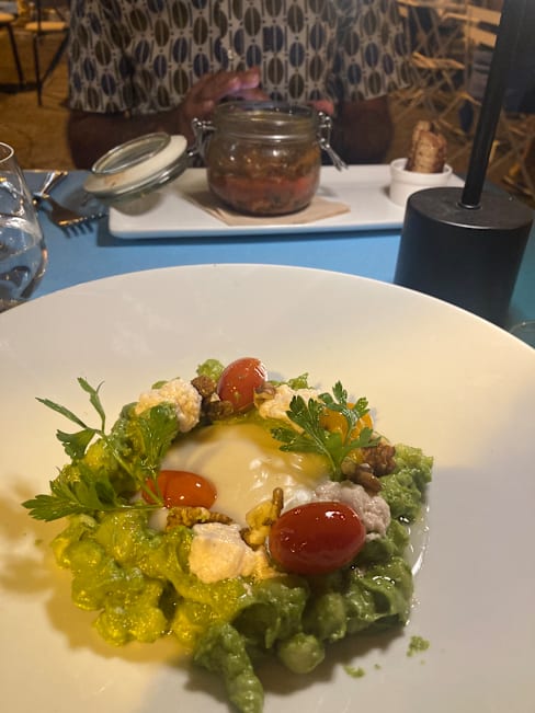 9.5/10surpisingly creative recepies, good wine, friendly and casual service. Only the chairs would be more comfortable with a little cushion outside. Anytime worth a visit!