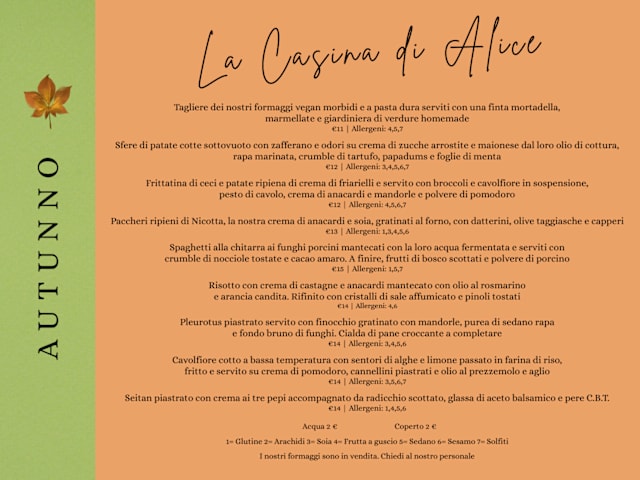 8/10Staff are welcoming and quite professional. Not our first time at La Casina di Alice. Maybe some dishes could be more consistence (more food), especially main dishes, and my roasted pumpkin wasn’t warm enough but overall the experience’s been good.