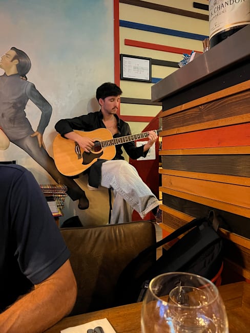 7.5/10Very nice interior and mood. Beautiful live guitar playing. Servings were a bit too small for the price in our opinion. Beef was done very good but lacked spices a bit, that may be my personal opinion only. Very friendly service although they asked if everything was fine way too often to the point it got a bit funny by the end.