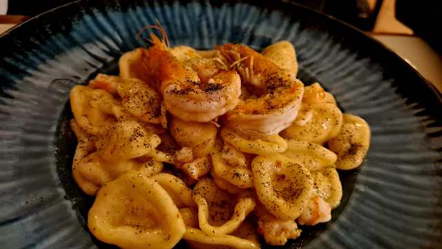 - Cappellacci neri al ripieno di salmone con stracciatella di bufala campana