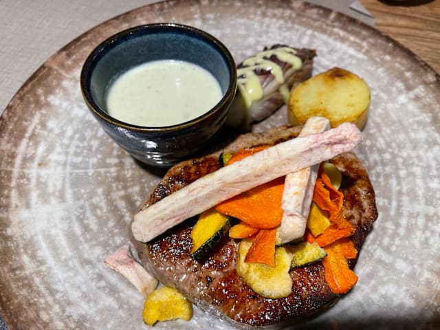 8/10Very good address. More advice on the menu would be welcome. Very nice and spacy restaurant room but the cold white lamps could be replaced by the warm white lights to improve the setting.