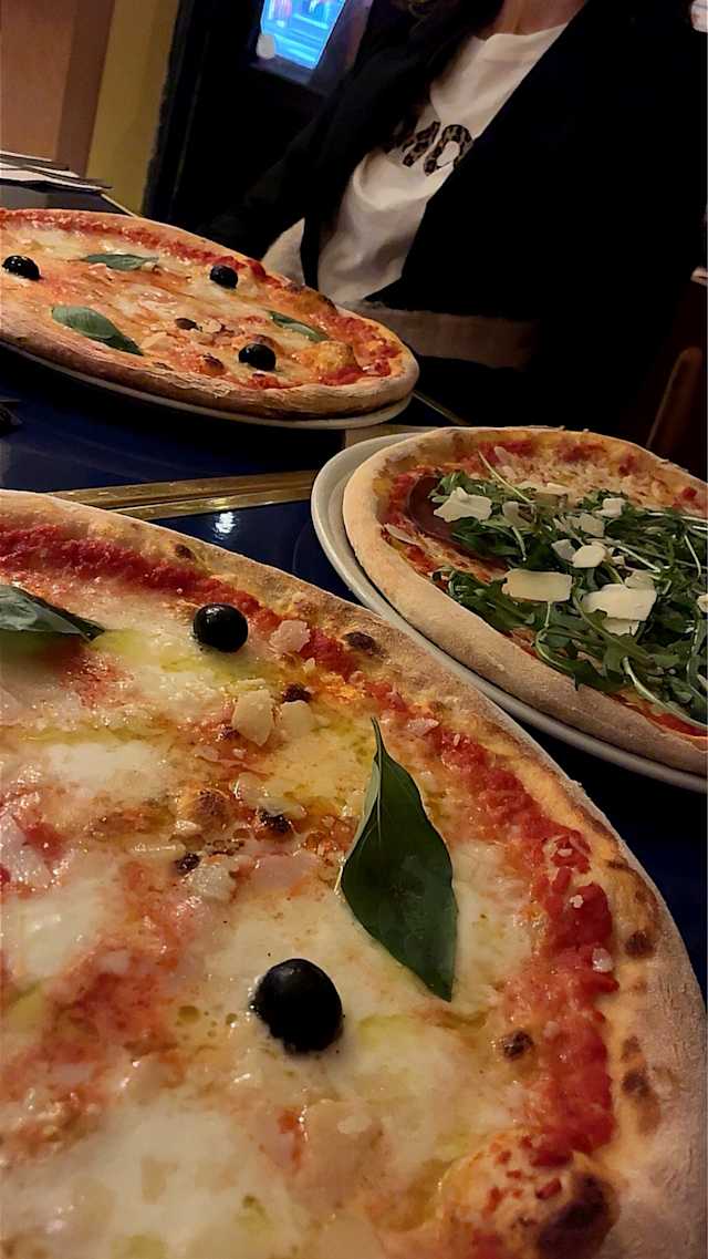 - Pizza tomate, mozza, + sirop à l’eau