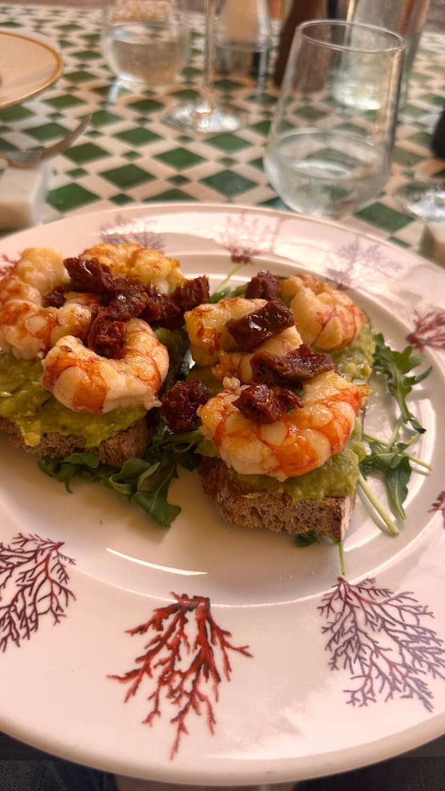 8/10Smaller menu for lunch, still some good choices, service was efficient. The tables outside are all in the shade with view of on internal courtyard. Would have been nice to be able to sit in the sun with views of greenery on the other side of the building/bar