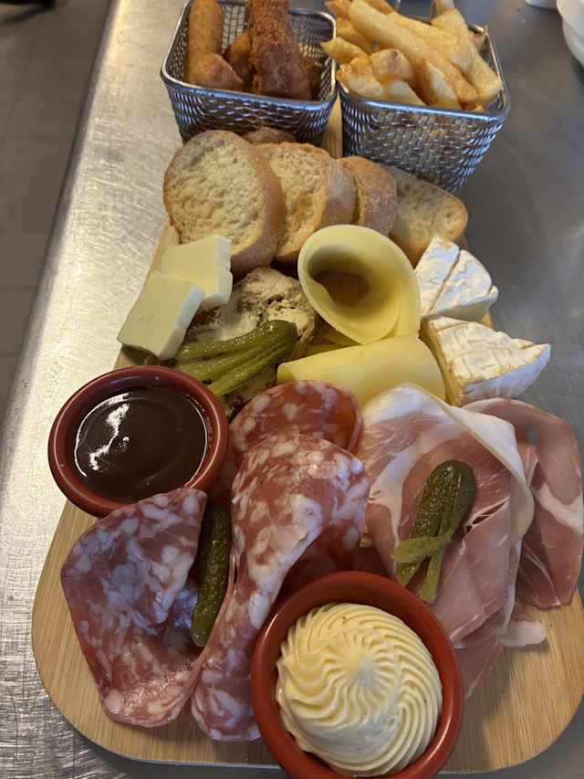 - Jambon cru, rosette, camembert, comté, stick mozza, wings, pain toasté, cornichons