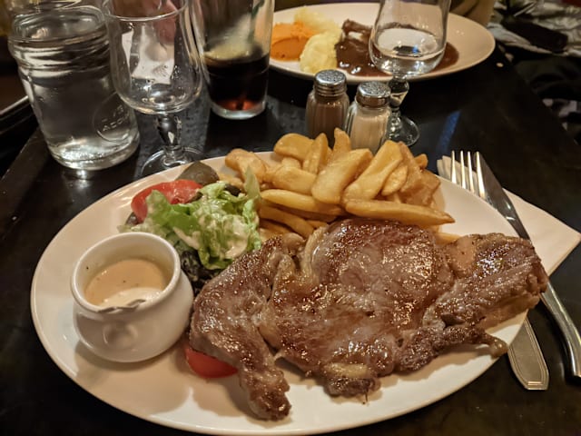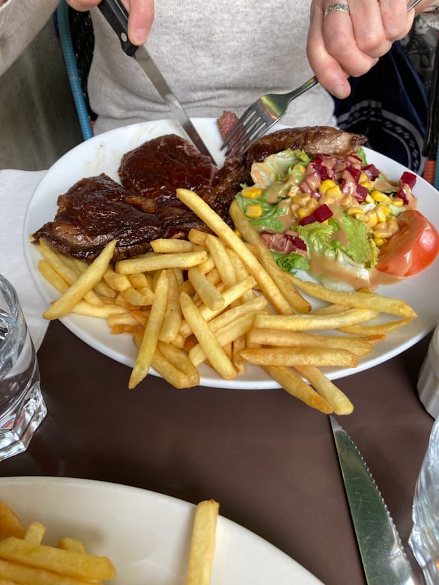 8/10Great location and better value than nearby restaurants. Serves a good variety of French dishes. Escargot was excellent. Moules were tasty with a generous portion but I did not care for the thick-cut fries. Dates were missing from my salad. Service was friendly. Overall, a good place to relax on a terrace drinking wine and enjoying French cuisine.