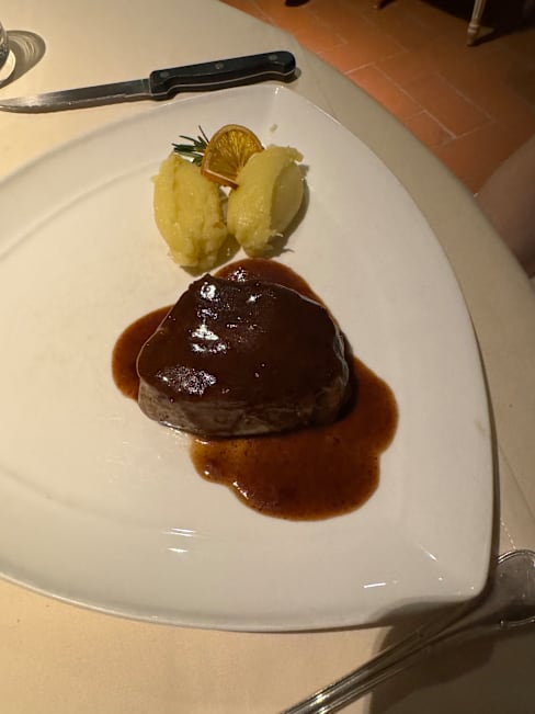 Dear Chris M, Thank you for the preference accorded to La Chiostrina restaurant and for taking the time to share your experience with us on The Fork. Concerning your comment about the steak and cold cuts, I will honor to share your positive review with all the Staff and the Chef. On the other hand, I am really sorry to read you did not appreciate your dessert. Our Restaurant Staff are always more than glad to assist our guests according to their personal tastes. We will be happy to welcoming you back! Best regards, David Foschi General Manager