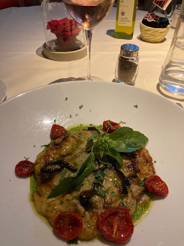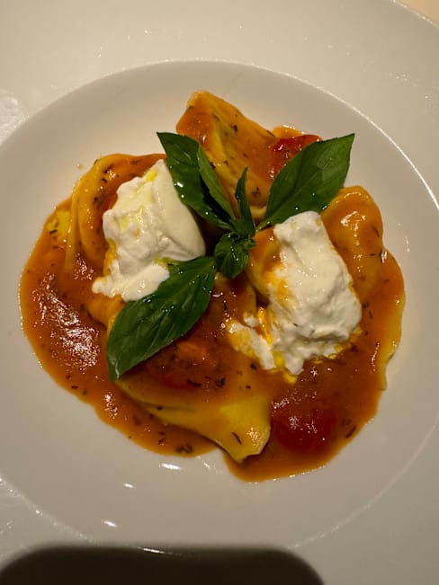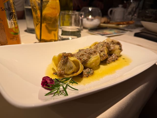 8/10La Chiostrina at the Bernini Palace Hotel offers a charming dining experience. The food was above average overall—we had the ravioli, and the pesto pasta which were both decent, and we also had the fillet and charcuterie plate, both just ok but not remarkable. The bread and olive oil was really good. The real highlight was the wine; the Franciacorta was excellent and definitely stood out. Pricing was very reasonable and because we reserved on line with The Fork App we received 20% off the food. I’d go back for the wine and ambiance, and perhaps to explore more of the menu. Our waiter, Franco was attentive and very professional.