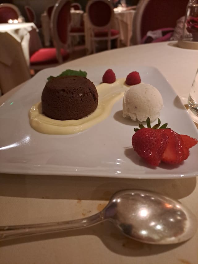 10/10Very pleasant restaurant in hotel. Wonderful service from knowledgeable and very professional maitre d. Extras with no charge included bread, amuse bouche and Moscati D’Asti when we shared a Millefoglie. A really great fillet steak was the highlight of an excellent meal. Very extensive wine list but starting prices from 20 euro. It is in the Bernini Palace Hotel . We were surprised it was not more widely advertised.