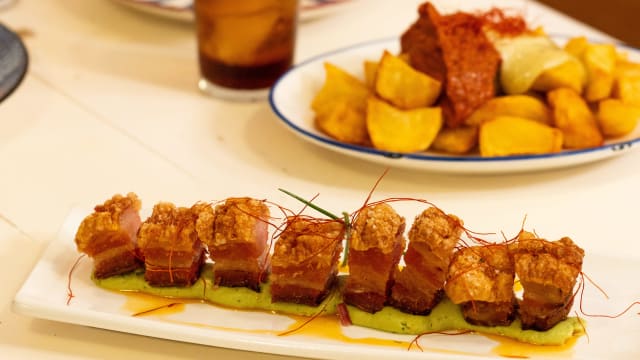 10/10the restaurant is small and has a wonderfully relaxed atmosphere. everything on the menu is excellent. they have a small number of dishes but all are done to the highest standards. the wine list is equally impressive. I recommend the fried pork belly and shish kebab made from morcilla. for dessert they have a fabulous Basque cheesecake. one of my favourite places to spend and afternoon.