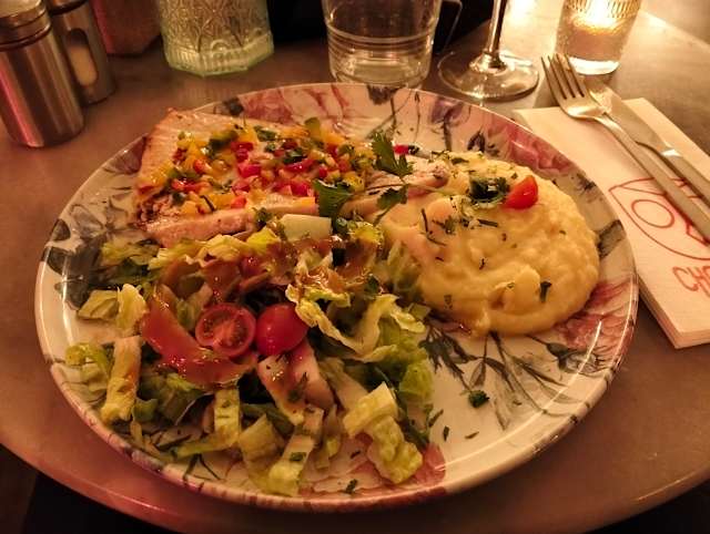 - Fish and chips, sauce béarnaise, frites, salade